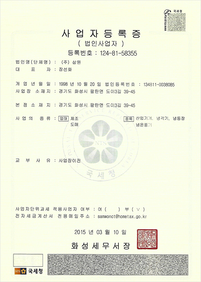 (주)삼원 사업자등록증
