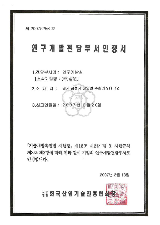 연구개발전담부서인증서